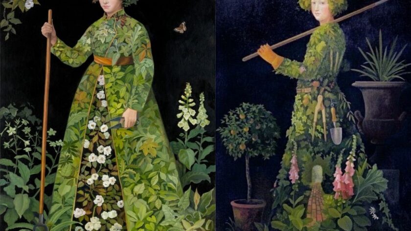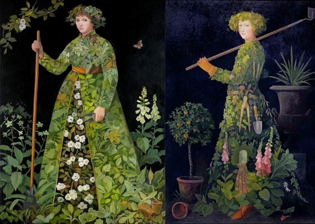 No he podido evitar incluir algunos de los trabajos de la artista británica Lizzie Riches. Con ella inauguré la primavera en 2014 y no podía faltar de nuevo la súper equipada jardinera, The Gardener. También tenía que estar en esta selección The Gadener’s Assistant, la asistente del jardinero o jardinera, porque no se sabe bien quién es su jefe, una pintura para la que se inspiró en los jardines del Blickling Hall, una casa solariega de principios del siglo XVI ubicada en el condado de Norfolk, Inglaterra, y que se encuentra bajo la protección del National Trust desde 1940.