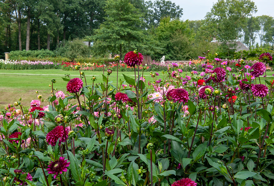Entre sus múltiples atractivos, hoy os propongo que nos paremos a disfrutar de las flores de más de 150 especies de dalias (Dhalia) que estos días continúan dando color a los jardines del Castillo de Keukenhof, porque los bulbos que florecen en verano y otoño también brillan en Lisse.