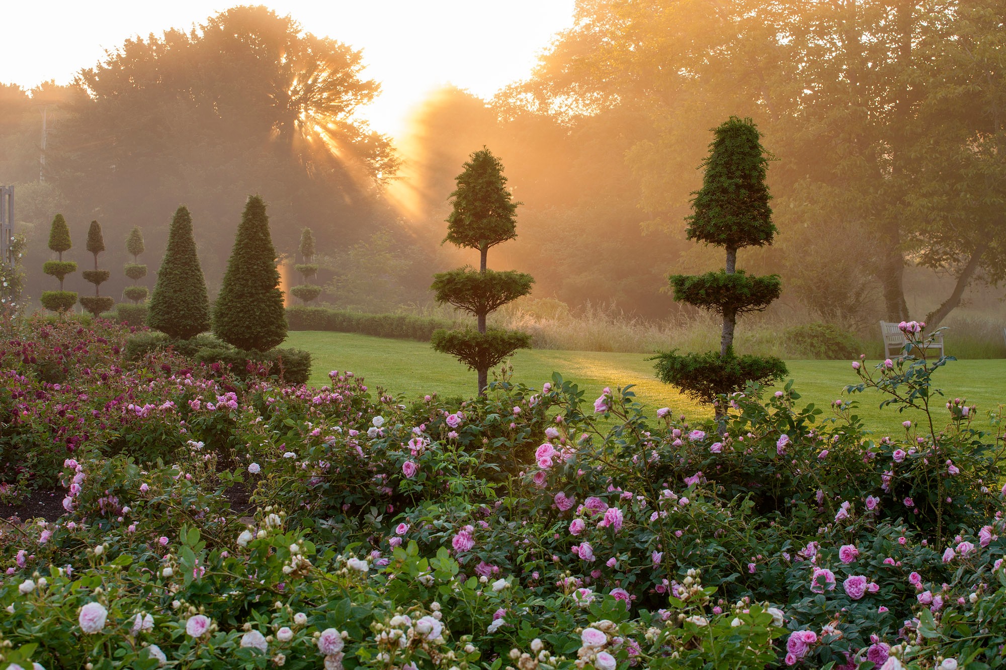 Creada como tributo a Lady Christie, en el jardín de rosas -Rose Garden Mary Christie- se cultivan rosas que están en flor desde principios de primavera hasta finales de otoño, acompañadas de tejos (Taxus baccata) recortados en topiaria.