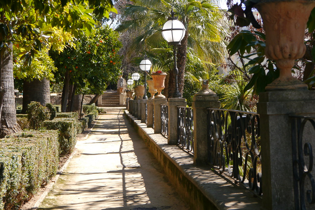 Acacias, magnolios, castaños de indias, plátanos de sombra, laureles, naranjos, almeces, calicantos, mimosas, madroños, oleandros, arrayanes, y numerosas palmeras de diferentes especies y alturas son solo algunas de las especies vegetales que ornamentan esos jardines.