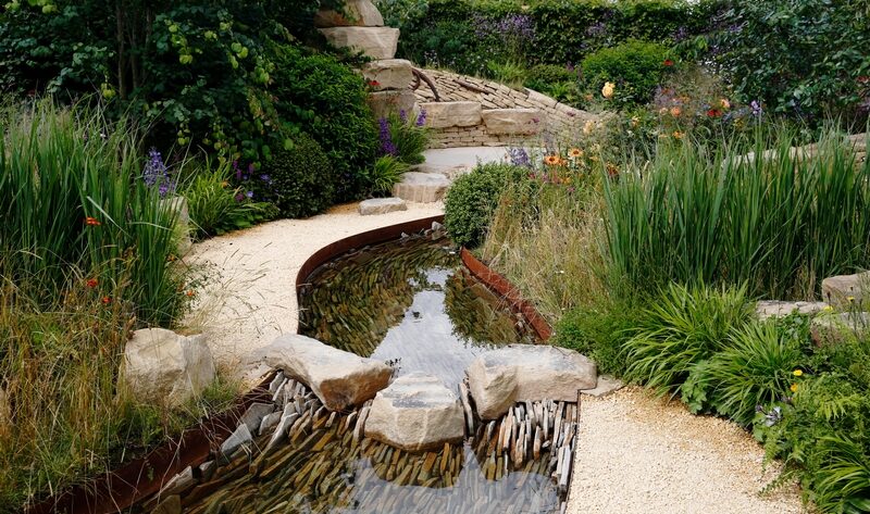 Los paisajes, colinas y valles de ese condado se han convertido en su fuente de inspiración a la hora de diseñar el jardín que acaba de presentar en Hampton Court 2016, donde Helen Elks-Smith ha procurado incorporar todos los elementos del paisaje de Yorkshire, incluido ese particular contraste de altura entre las tierras altas (Yorkshire Dales) y las áreas bajas. En la zona más alta predominan los fuertes vientos, mientras que en las más bajas, las suaves ondulaciones permiten que la corriente del agua fluya, serpentee y recorra las diferentes zonas de la campiña, en este caso las diferentes secciones del jardín de exhibición.