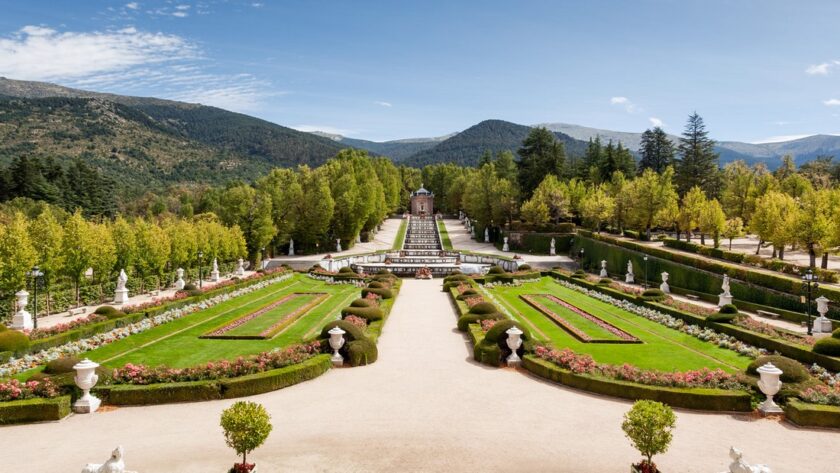 Una serie de espacios verdes sirven de telón de fondo a las espectaculares piezas escultóricas de mármol que se despliegan por los jardines de La Granja de San Ildefonso en Segovia, el mejor ejemplo en España de jardín formal francés. Aunque, en realidad, los verdaderos protagonistas de esos jardines son los juegos de agua de las fuentes.