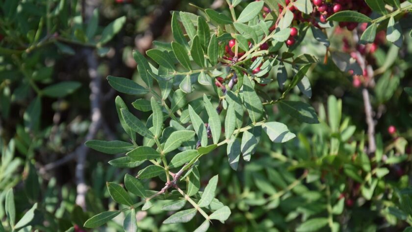 En cualquier sendero de los campos valencianos serán pocos los lugares donde no podamos disfrutar del fresco aroma de las hojas de esta planta conocida como lentisco (llenstiscle en valenciano). Pistacia lentiscuses un arbusto que generalmente no pasa de los 3 metros de altura y con el tiempo desarrolla troncos principales definidos. Si es respetado, puede llegar a alcanzar los 10 metros.  Pertenece a la familia Anarquideaceae, que incluye especies que se caracterizan por aportar resinas como la laca, la mirra, el incienso y la almácifa de lentisco.
