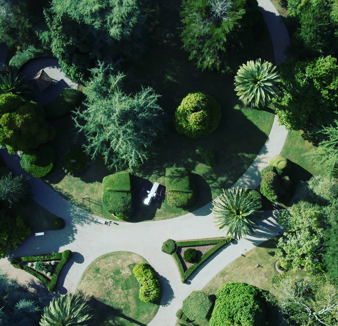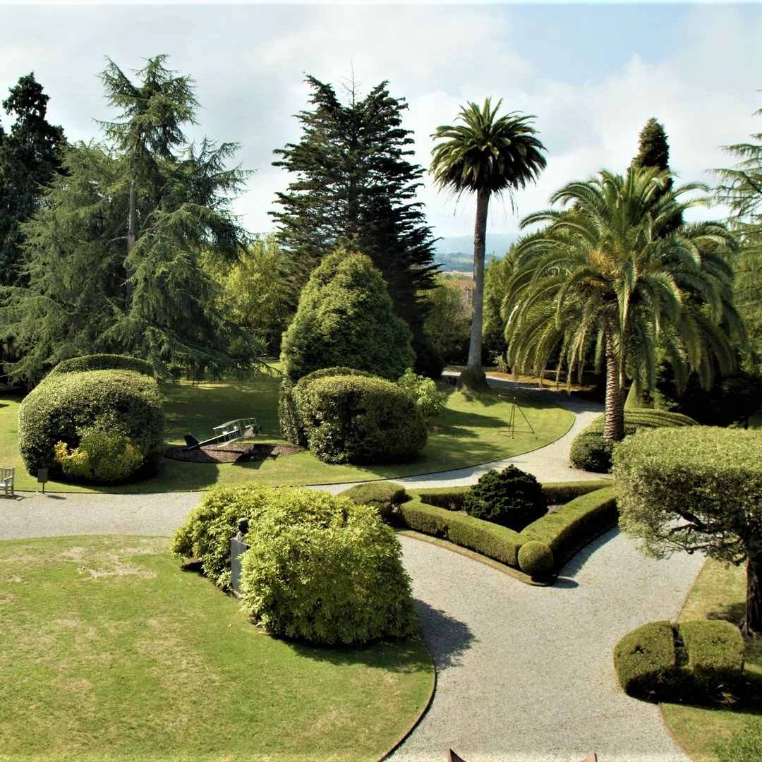En los jardines se pueden encontrar topiarias realizadas sobre viejos ejemplares de laurel común (Laurus nobilis), acebo (Ilex aquifolium), diferentes variedades de boj (Buxus sempervirens), evónimo (Euonymus europaeus), tuya (Thuja sp) y tejo (Taxus baccata).