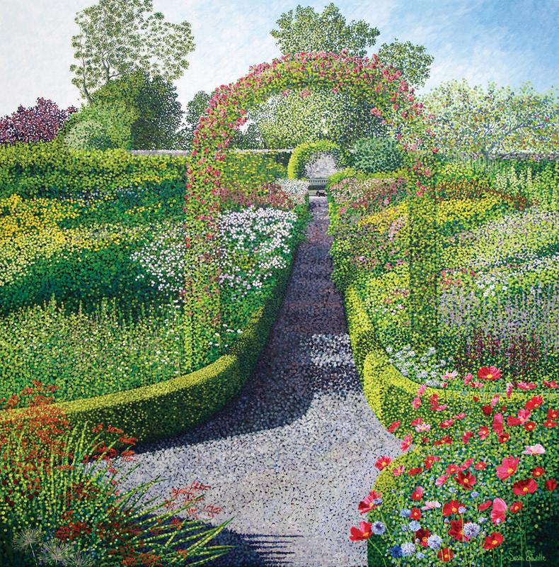Se presenta como una de las pocas artistas que utiliza la técnica del puntillismo en sus pinturas, creando capas de puntos coloridos para capturar la vitalidad y la esencia de bellos jardines y paisajes. Muchos de los jardines británicos pintados por Susan Entwistle son conocidos. Tal es el caso de RHS Garden Wisley y Harlow Carr, Forde Abbey, Combo Gardens o Levens Hall entre otros. Jardines de los que extrae también detalles de sus plantas y flores.