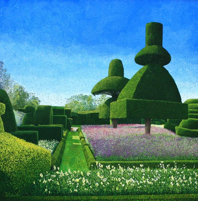 No falta un jardín de plantas medicinales, el del Royal College of Physicians en Londres, un organismo profesional británico dedicado a mejorar la práctica de la medicina, principalmente a través de la acreditación de médicos por examen. Tampoco falta el arte topiario, que este caso está representado por su pintura en el Topiary Garden de Levens Hall.