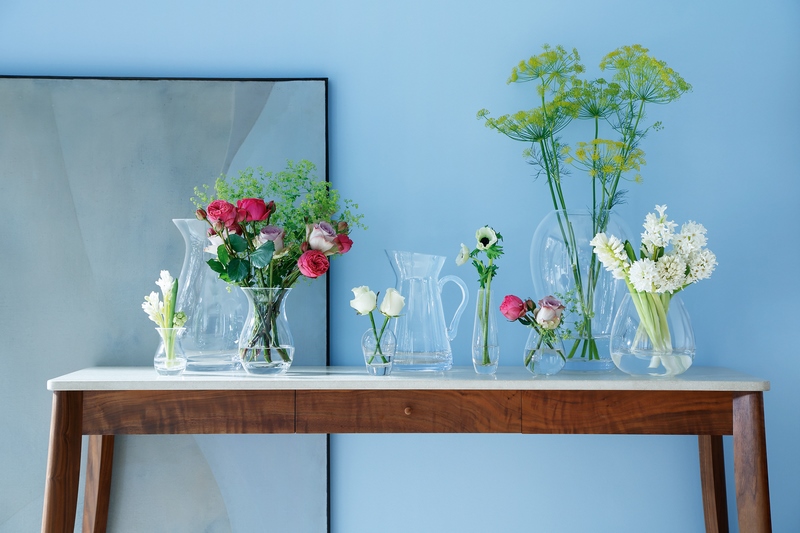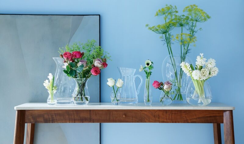 Pequeños (y no tan pequeños) arreglos con flores de cada temporada, o algo más informal, solo con follaje. Incluso alguna suculenta pequeña. Lo importante es el “relleno”, sí, pero el soporte también cuenta. Los jarrones de vidrio y de cristal tienen mucho que decir y hasta colores para elegir.