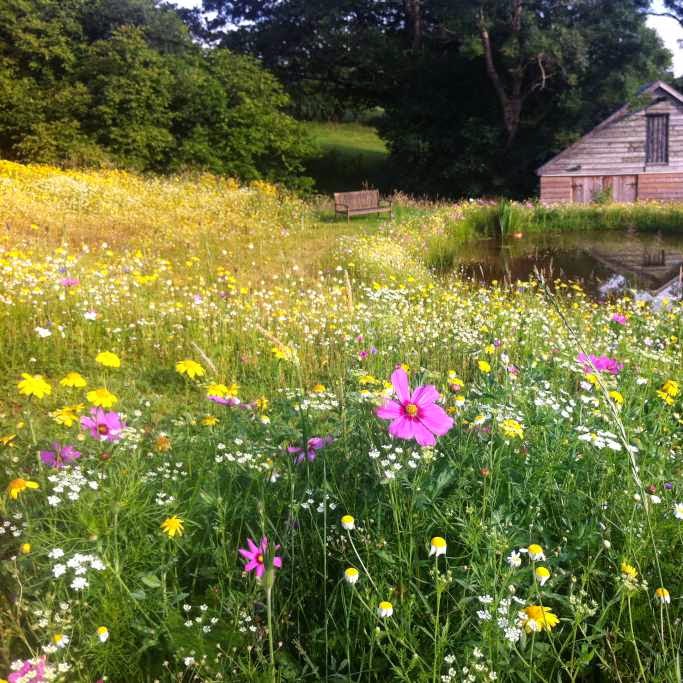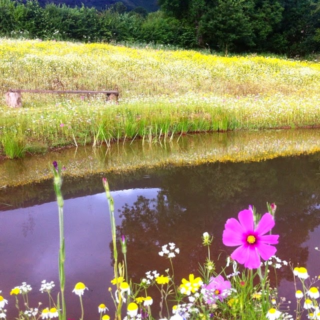 En su blog cuenta la evolución de ese trabajo, en el que empleó plantas y flores especificas para estanques de jardín, además de mezcla de flores silvestres alrededor de la casa y en los caminos. También eligió semillas de flores en tonos pastel para dar el efecto pictórico a esa pradera. Os dejo aquí el enlace a esa entrada del blog por si os apetece ver detalles de ese trabajo.