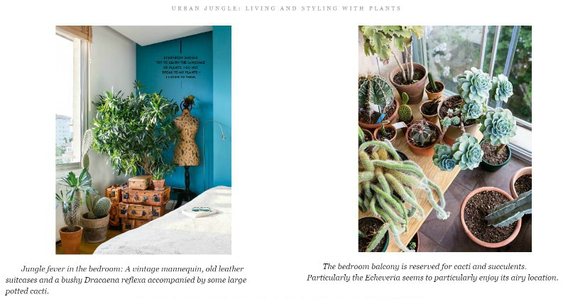 Ya sabes, si estás pensando en crear un ambiente hogareño más fresco, alegre y saludable, especialmente si vives en un piso o apartamento, empieza a pensar en las plantas como aliadas. Te pedirán algunos cuidados básicos y, a cambio, te ayudarán a sentir que vives o trabajas en un mágico refugio y no tanto en una vivienda urbana. Y si no me crees, observa las imágenes que he seleccionado del libro a modo de ejemplo. Esto es la jungla y no ha sido necesario salir de la ciudad.