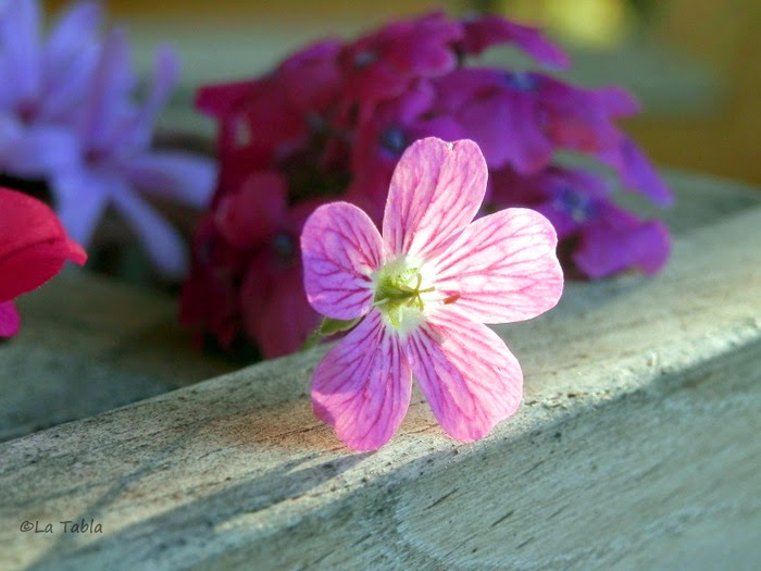 El erodium en cuestión está estupendo, pero enfadado. Yo no hablo con las plantas, que conste (con los perros sí, lo confieso…), pero a juzgar por su “actitud”, parece que me quiera decir algo así como: ¿humilde yo?, estas muy equivocada, a mí, como a todas las plantas y a todos los humanos, me gusta vivir, derrochar, desparramar; si me contengo es por sentido común, que no por humildad.