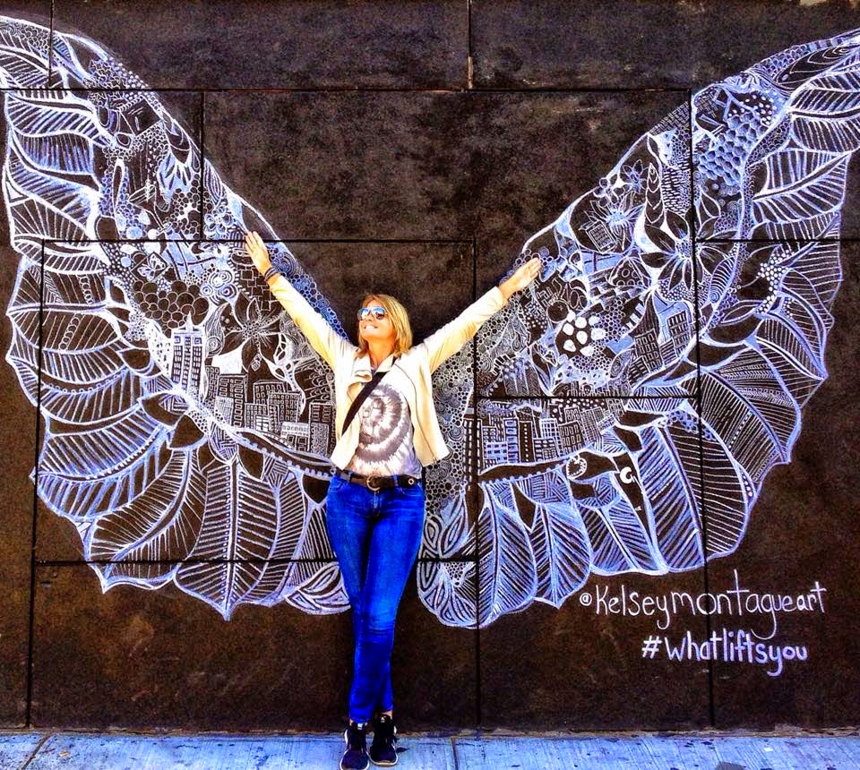 Kesley Montague es una joven artista que parece querer poner alas a la vida… y a la calle. Estudió arte en Florencia y se graduó en Arte, Diseño y Medios en la Universidad de Richmond, Londres. Sus cuatro años en Nueva York le han dado alas para hacer lo que más le gusta.