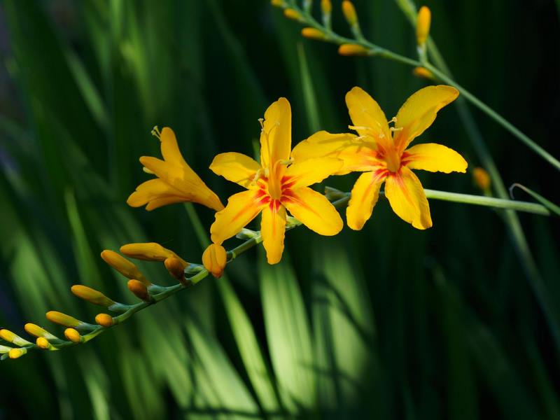 Se han presentado dos nuevas crocosmias, una variedad con flores amarillas y ojos de color naranja (Crocosmia‘Firestars Hotspot’) y la otra con flores de color naranja y rojo (Croscosmia ‘Firestars Scorchio’).