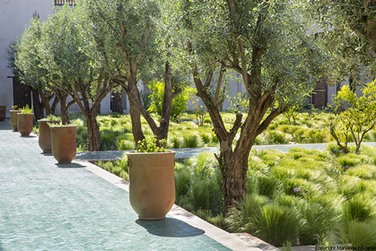En el jardín más pequeño, se hizo una interpretación más romántica de un jardín marroquí. Lo llenó de color y flores de diversas especies, dándole un aspecto que no se suele ver en un jardín más tradicional.