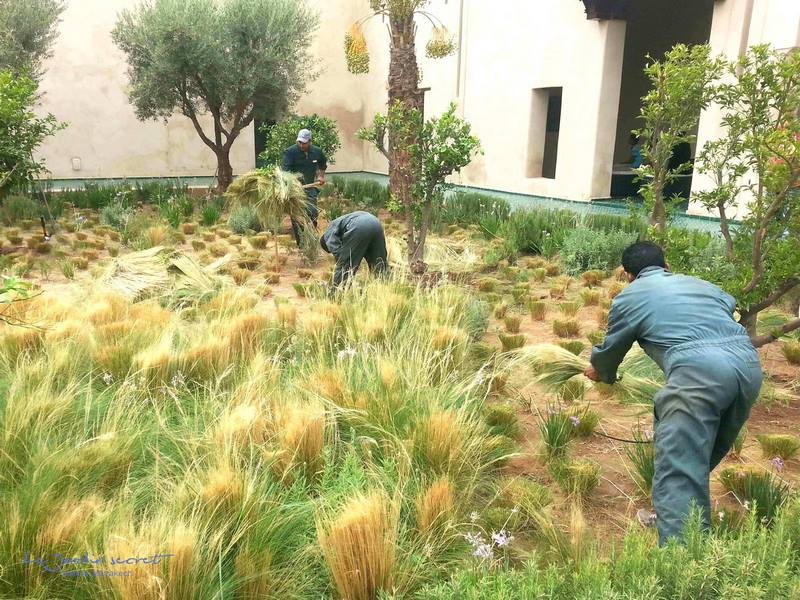 El jardín islámico fue restaurado siguiendo la disposición del siglo XVIII. Este tipo de jardín, estrechamente vinculado a las estructuras de los riad, era un oasis de paz, donde se permitía disfrutar de su ociosidad y contemplación gracias a la sombra de los árboles ya la intimidad del espacio cerrado.