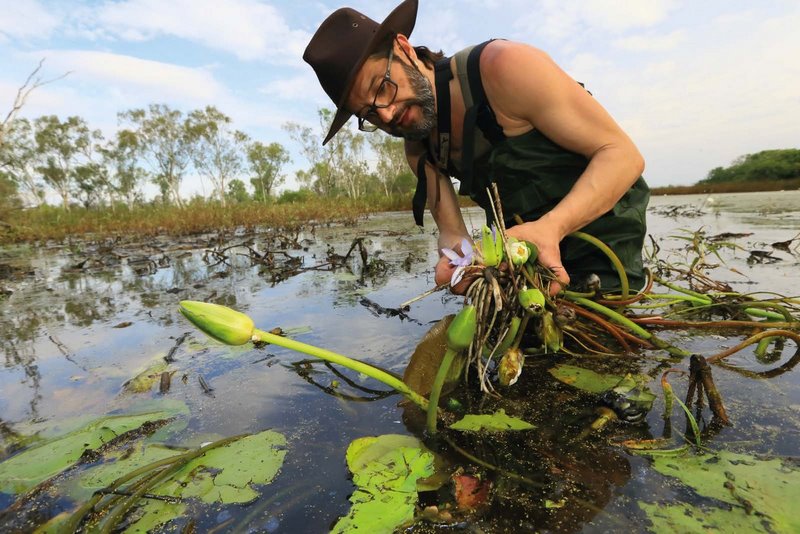 Nada más sencillo para comprobar el tamaño real de una flor, que «posar» junto a una planta como la Victoria amazonica. Seguir leyendo…