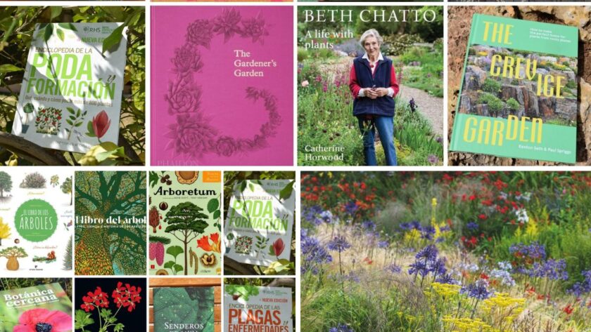 Claro que, también hay algunos títulos en inglés, libros donde no falta información e imágenes sobre extraordinarios jardines naturalistas, así como inspiradoras ideas sobre el cultivo de plantas en macetas a lo largo de las estaciones, incluso una exhaustiva información sobre los curiosos jardines en grietas.