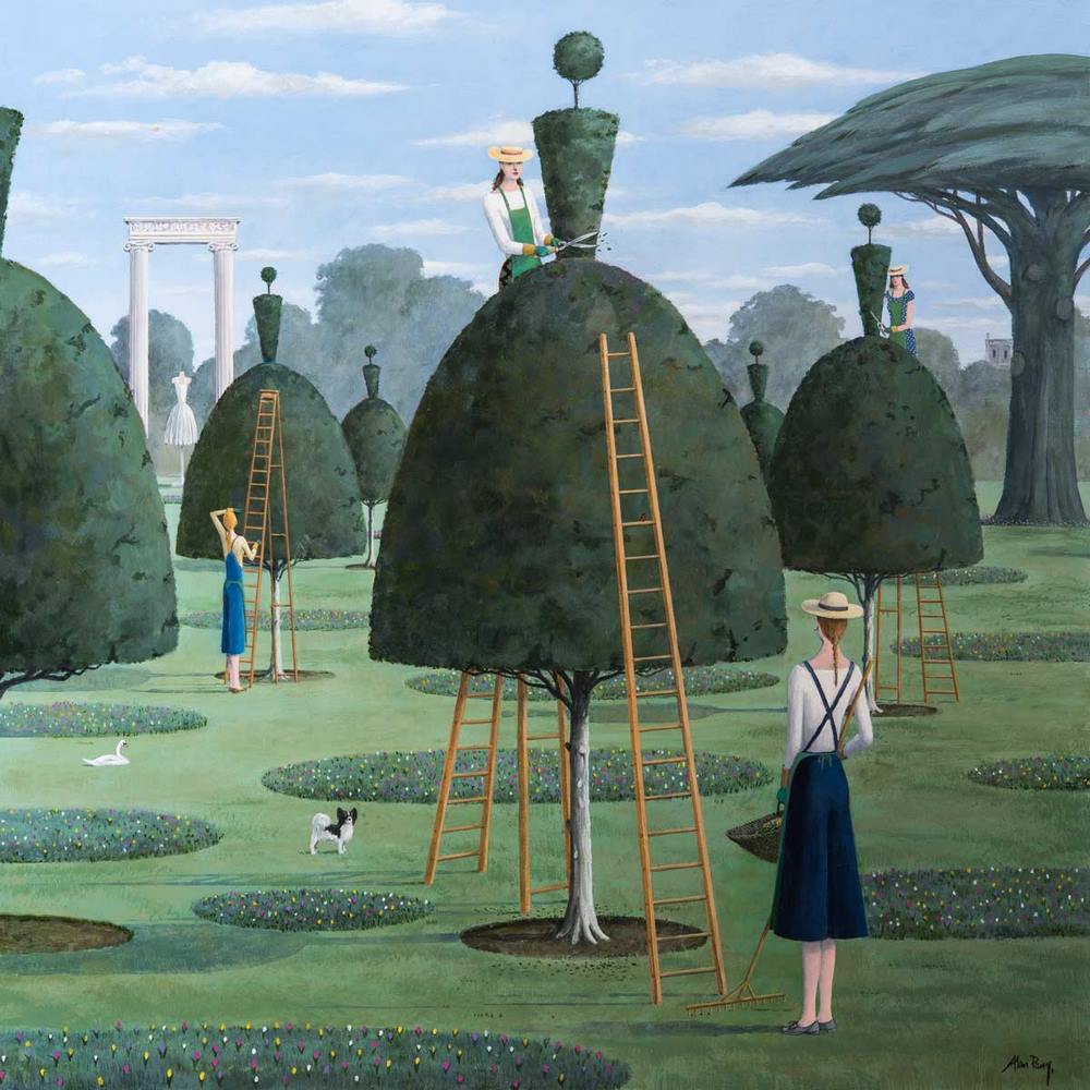 Con composiciones hábilmente dispuestas y estilizadas, el artista británico Alan Parry se sitúa a caballo entre los paisajes más extraños de Paul Nash, con clara inspiración de los surrealistas; y las pinturas ruralistas, donde el paisaje rural se presenta sublimado, idealizado y cargado de simbolismo, un movimiento (hermandad artística) creado en Somerset en 1975 y cuyo propósito era ofrecer una imagen idílica de la vida en el campo. Ver: David Inshow y los ‘Ruralistas’.