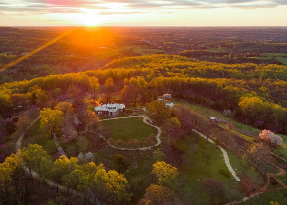 Vista aérea de Monticello y The Winding Walk • © Monticello org.