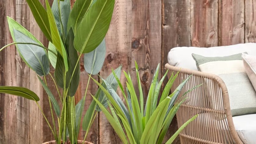 - Maceteros de mimbre y ratán con soporte para plantas de interior