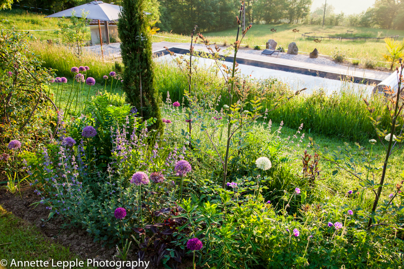 No solo han hecho la mayor parte del trabajo ellos mismos, sino que se ocupan del mantenimiento. Además, Annette suele propagar sus propias plantas. El resultado final lo considero una maravilla, un jardín donde han sido capaces de armonizar los diferentes ambientes con el entorno que rodea a la casa. Una aire salvaje y desenfadado que envuelve un diseño de plantación muy trabajado.