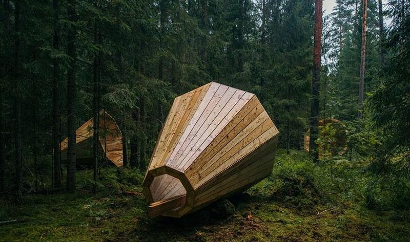 El motivo principal de estos amplificadores gigantes (3 metros de diámetro) tiene que ver con el sonido. Son piezas en madera diseñadas por un equipo de estudiantes de la Academia de las Artes de Estonia, que hacen posible escuchar el sonido del bosque amplificando su intensidad.