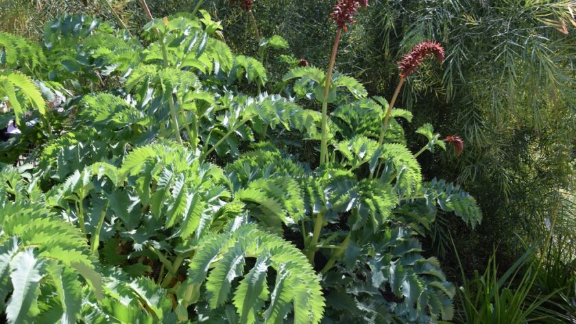 La calidad arquitectónica y la textura áspera del follaje proporcionan un contraste espectacular con las plantas anuales de hojas más pequeñas o las gramíneas ornamentales. Además, su color es muy adecuado para una plantación de estilo mediterráneo.