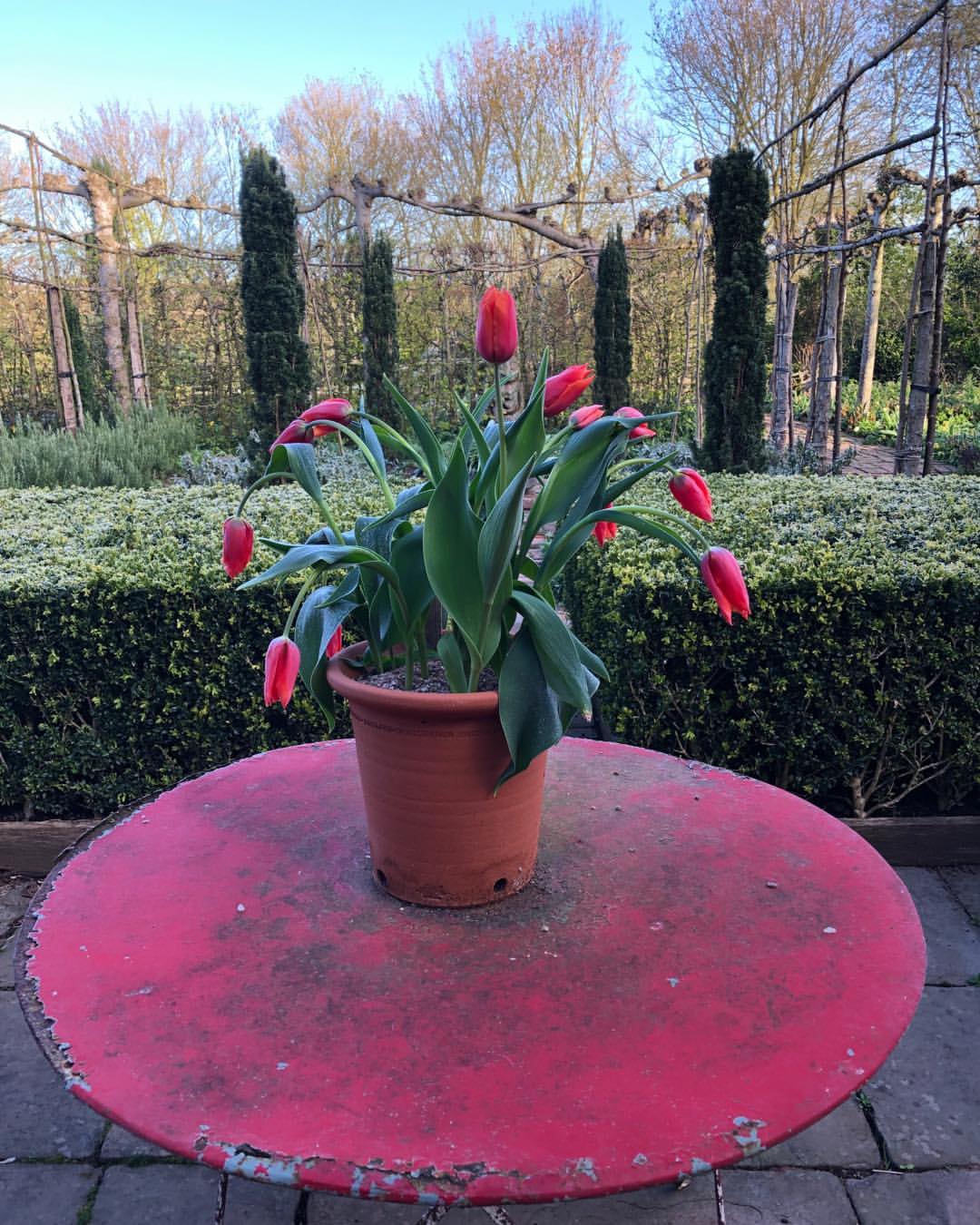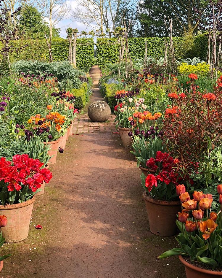 ¿Qué más vamos a ver en las fotos que publica a diario? Pues, aparte de Nigel y Nell patrullando el jardín (o descansando…), todo va a depender de la época en la que nos encontremos, porque esa es la magia, sabremos cuando hay que “sacar a la luz” los bulbos de Dahlia para volver a plantarlos, o cuando empiezan a florecer los bulbos de primavera. Días atrás, por ejemplo, nos mostraba imágenes que dejan ver cómo lucen los tulipanes en el Jewel Garden, así como las siempre atractivas flores de Tulipa acuminata en el Paradise Garden. Más recientemente, el turno era para las inflorescencias de Alliumy algún que otro lirio (Iris)