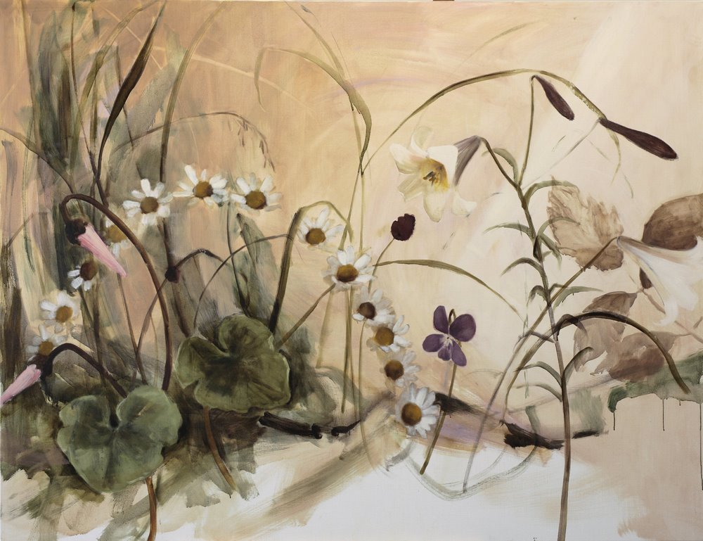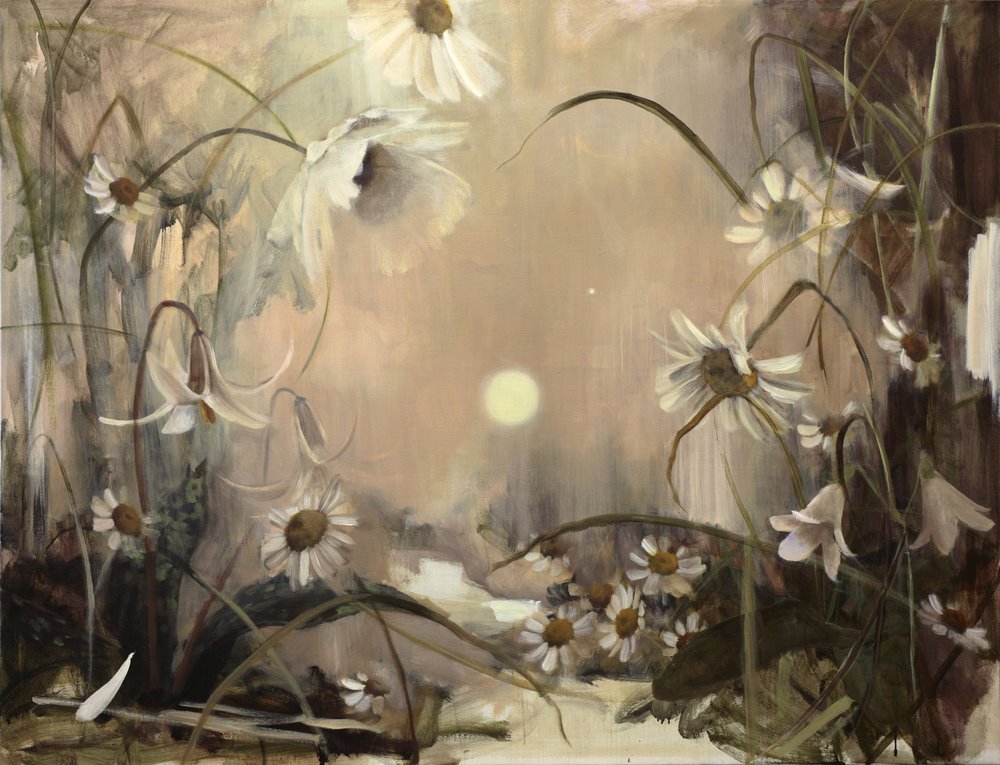 Sus obras son representaciones florales a gran escala. Ella misma reconoce que sus pinturas pisan los límites entre el paisaje y la naturaleza muerta, y entre el realismo y la abstracción. Siempre en formato grande, captura las horas mágicas del atardecer y el amanecer, su luz incandescente, y todo con una escala que hace que su experiencia visual se transmita con fuerza en sus pinturas de flores.