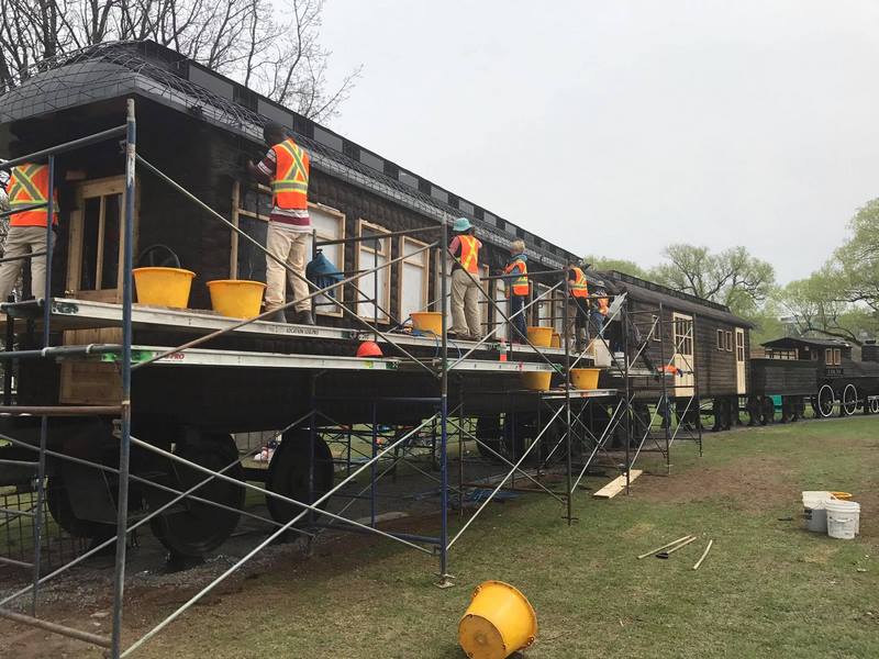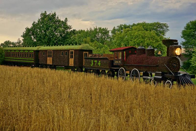Este año, una de las esculturas estrella ha sido la locomotora a tamaño real, cubierta por un campo de trigo que se creó a base de numerosas plantas en maceta.
