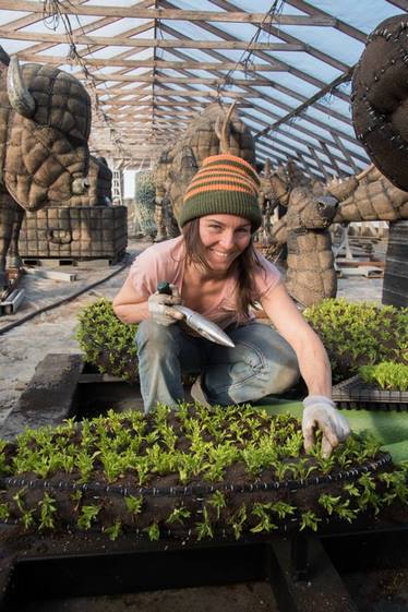 A partir de entonces, son los horticultores los que entran en acción y hacen su magia. Crean un suelo fértila base de musgo sphagnum regado de forma constante y cuidadosa; siembranlas plantas y las mantienen. Ellos dan vida y color a esos esqueletos que acaban convirtiéndose en personajes llenos de sueños e ilusión.