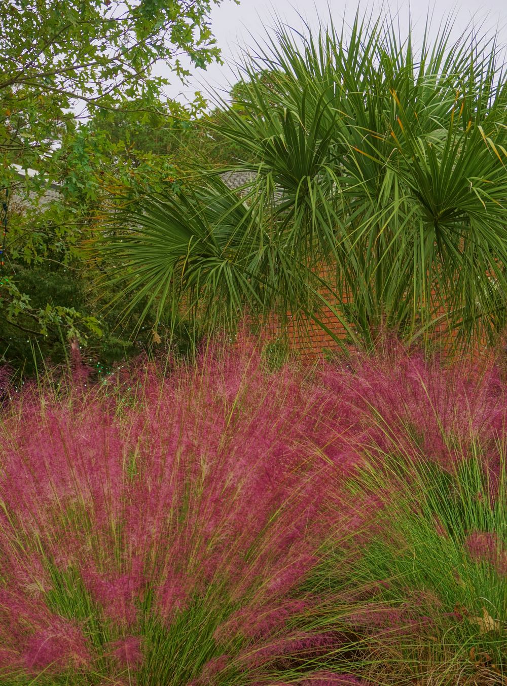 | Muhlenbergia capillaris y Sabal palmetto en el Jardín Botánico Cape Fear | Foto: Karl Gercens |