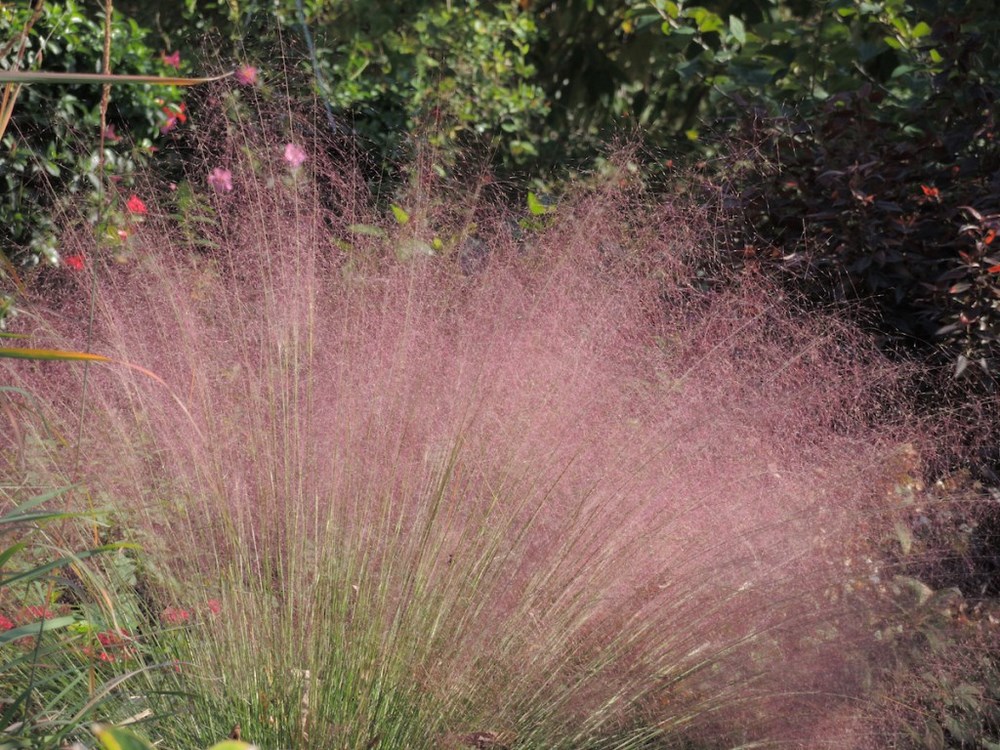 Si este género es conocido y admirado por jardineros y paisajistas es gracias a la especie Muhlenbergia capillaris, una hierba perenne con área de distribución nativa en el centro y este de los Estados Unidos hasta Guatemala y en el Caribe, donde crece en praderas, páramos y bosques de pinos abiertos. El epíteto específico capillaris procede del latín y significa capilar, semejante al pelo. No hace falta explicar por qué eligieron esa palabra ¿verdad?