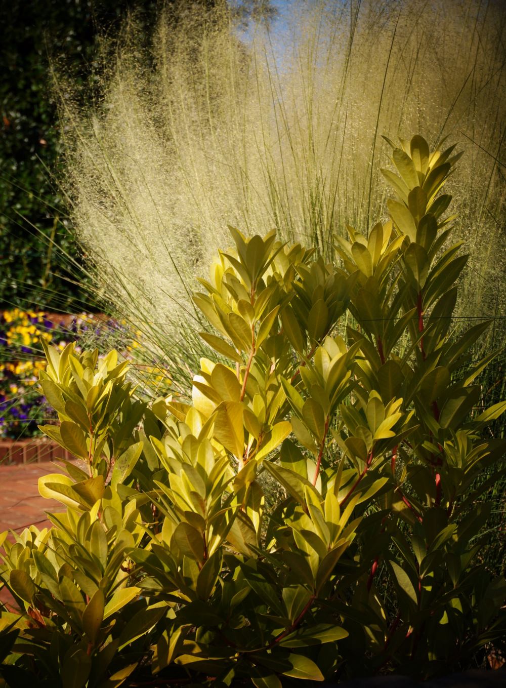 | Muhlenbergia capillaris ‘White Cloud’ con Illicium ‘Florida Sunshine’ en el Jardín Botánico Lewis Ginter | Foto: Karl Gercens |