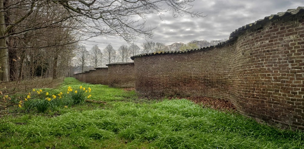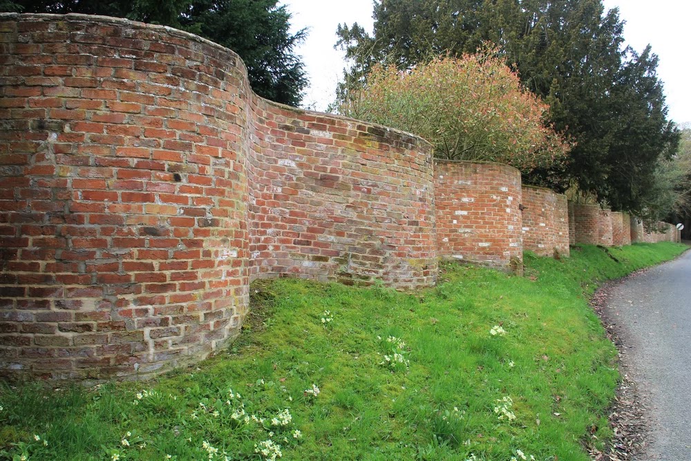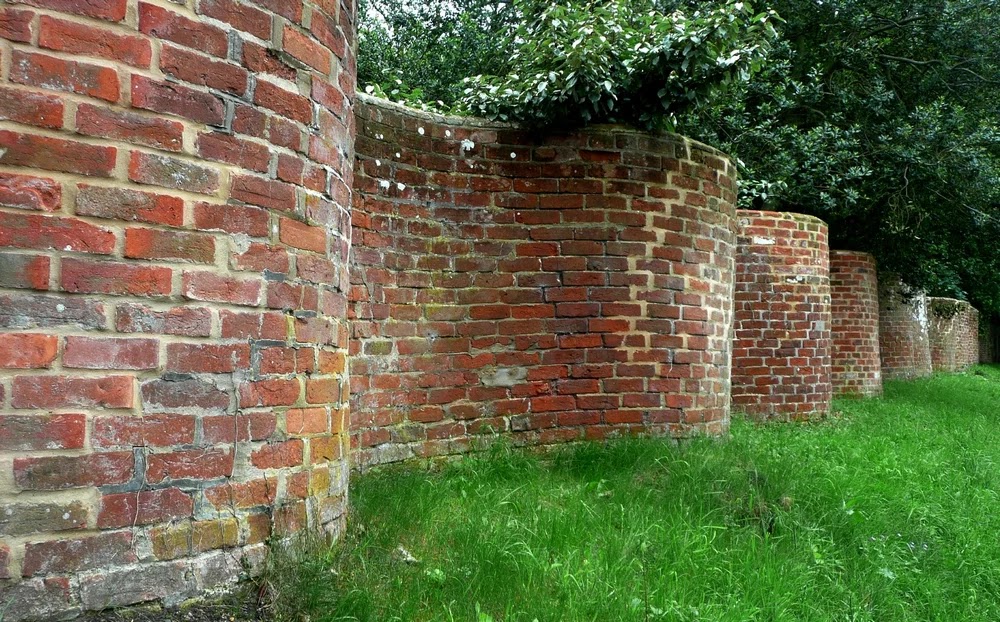 Pero esos ingenieros holandeses no solo instalaron el sistema de drenaje y riego, sino que también levantaron muros de ladrillo con un diseño muy diferente a lo que solía verse en Inglaterra, ya que los muros de la época perseguían la simplicidad y solían estar construidos en línea recta y, además, tenían dos ladrillos de espesor para que tuvieran mayor estabilidad. Sin embargo, el diseño holandés tenía solo un ladrillo de espesor y, para proporcionarle estabilidad, no se construyó como una línea recta, sino con curvas alternas convexas y cóncavas que brindaban estabilidad y lo ayudaban a resistir las fuerzas laterales, sin necesidad de contrafuertes o pilares.