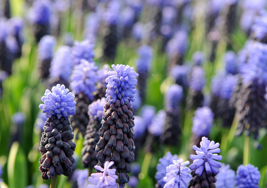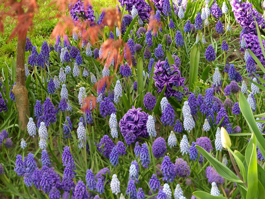 Hay una plantación de Muscari muy conocida en el parque Keukenhofde Holanda que se conoce como ‘río azul’. Se trata de una plantación muy densa que serpentea entre los arbustos y que en su mayoría florecen a la vez. Año tras año, esta es la escena más fotografiada de este espectacular parque de primavera. La especie plantada en este lugar es Muscari armeniacum, posiblemente el muscari más conocido.