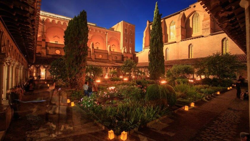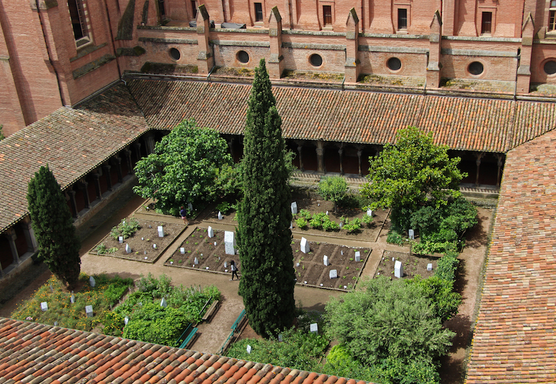 Toulouse, que recibe el apodo de Ciudad Rosa por el color dominante en los edificios antiguos, hechos con ladrillos caravista, tiene entre sus tesoros un antiguo Convento de los Agustinos, hoy Museo de los Agustinos (Musée des Augustins), el Museo de Bellas Artes de Toulouse en Haute-Garonne. Allí, casi escondido, existe un pequeño jardín de flores, plantas medicinales y un huerto, dispuestos en el centro del gran claustro rodeado de arcos soportados por 176 columnas pareadas construidas de mármol y rematadas con capiteles esculpidos.
