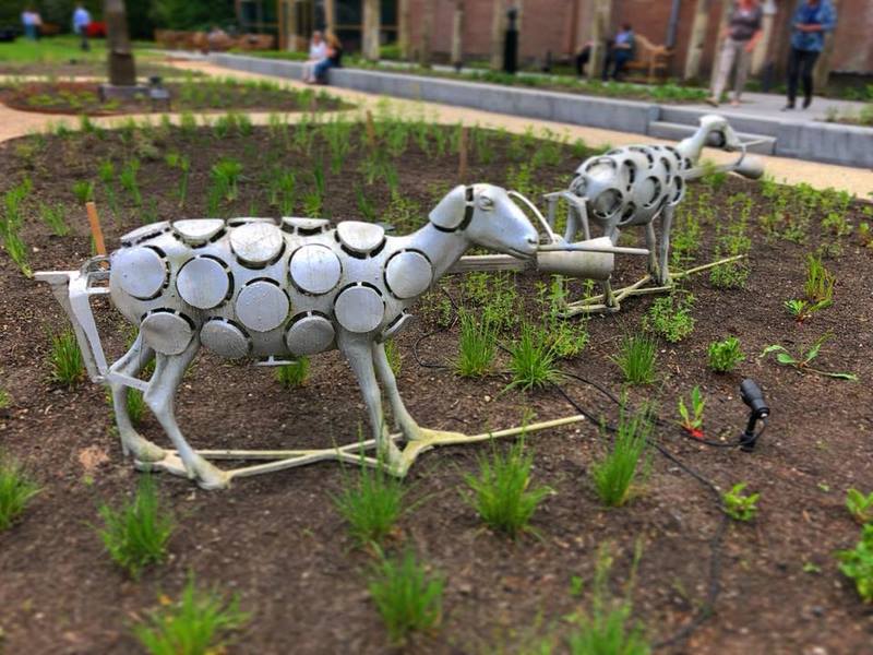 La matriz de plantación se aplica con una base de gramíneas ornamentales en las que herbáceas como Baptisia australis, Amsonia hubrichtii y Papaverspp. sirven para capturar la mirada. Se pretende que los árboles, utilizados incluso en la sección de plantas, jueguen un papel discreto, para no restar atención a las esculturas.