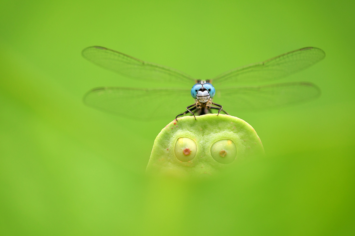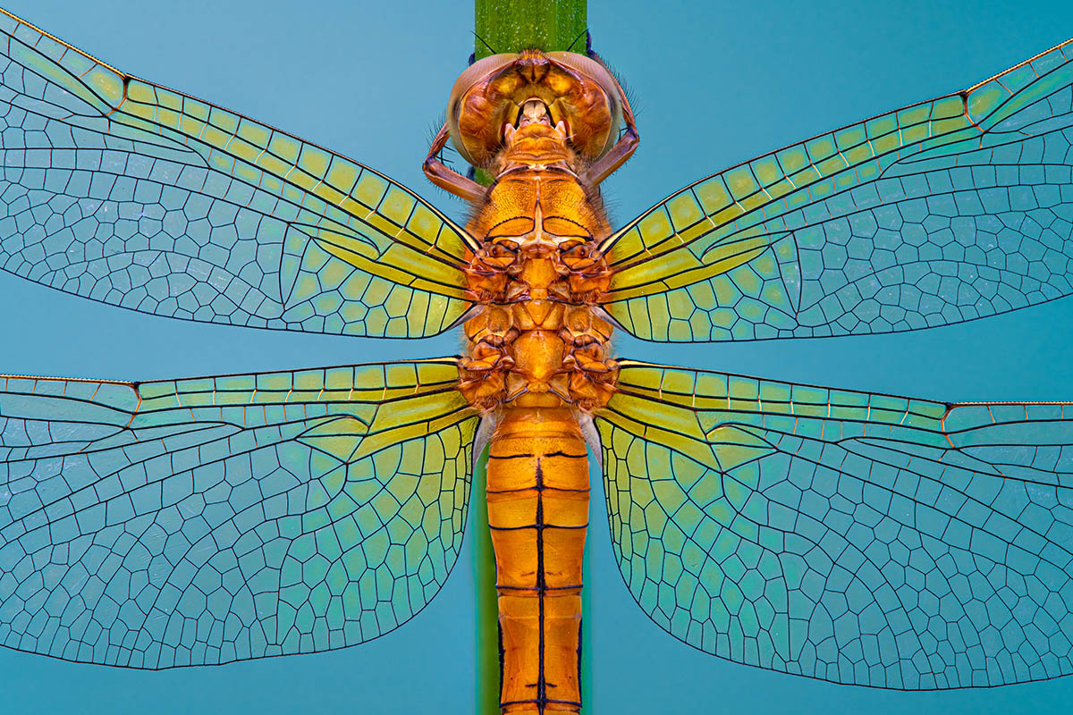 Entre tanto bichito, no podía faltar una libélula, de hecho, he visto volar más de una en esta edición. En este caso, el fotógrafo croata Petar Sabol ha obtenido el tercer premio por su foto de una libélula hembra de Orthetrum coerulescens. La líbelula protagonista estaba en reposo junto a un estanque y al fotógrafo le sorprendieron las hermosas y detalladas alas, especialmente la parte translúcida, que brillaban como paneles de vitrales.