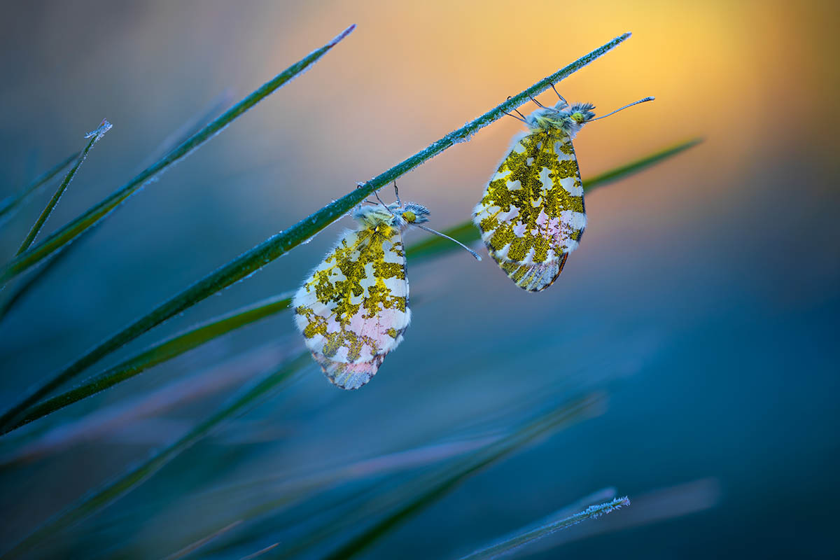 No han faltado mariposas. Una mariposa Brenthishecate capturada con la luz del atardecer; un par de mariposas Anthochariscardaminas esperando los primeros rayos de sol al amanecer; y de madrugada, la oruga de una mariposa papilio (familia Papilionidae), mi segunda foto favorita. No falta, tampoco, el detalle microscópico del patrón de las alas de otra mariposa cola de golondrina (Papilio sp)