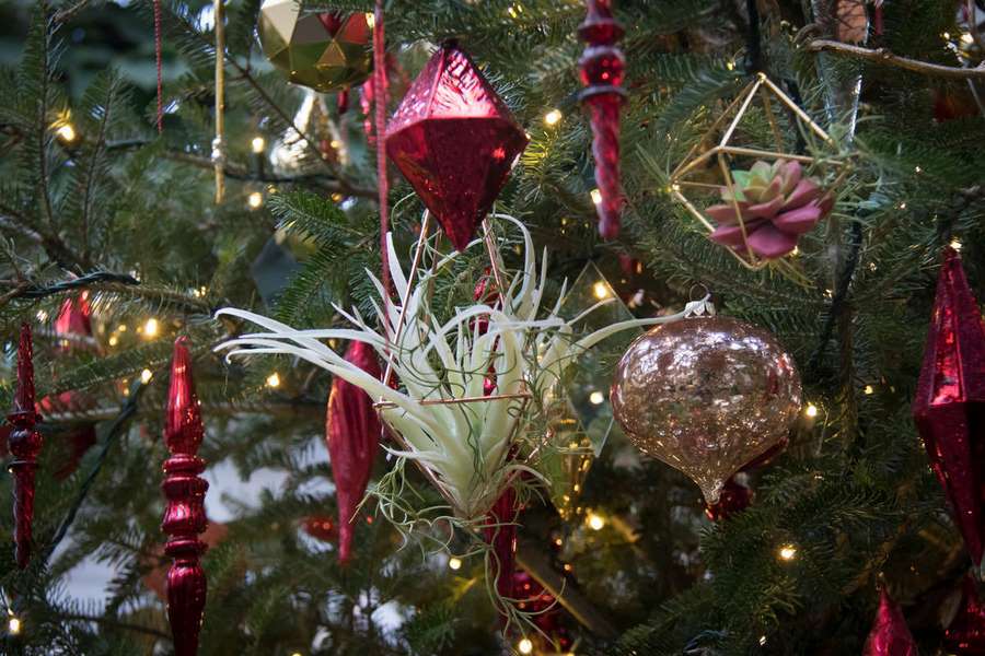 Tillandsias, suculentas, lágrimas de cristal, luces y mucha creatividad. Cada Navidad, la puesta en escena en Longwood Gardens deja su huella en los jardines y también lo hace en las diferentes salas, siempre de forma espectacular, todo hay que decirlo. Las plantas son las protagonistas, sí, unas plantas que lucen especialmente porque se combinan con gusto, se suspenden de las ramas de los árboles de navidad o se acompañan de originales y vistosos adornos navideños.