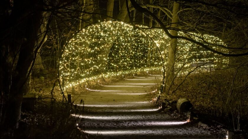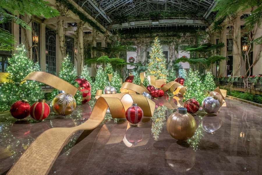 Entre los elementos más espectaculares de la exhibición al aire libre de Navidad de este año en Longwood Gardens, uno de los jardines botánicos más importantes de los Estados Unidos, ubicado en Kennett Square, Pennsylvania, se encuentra el nuevo túnel creado en el Meadow Garden. El túnel, de 2,7 metros de alto por 3 metros de ancho, es un diseño cuidadosamente pensado, que ofrece una experiencia inmersiva gracias a 7.000 cálidas luces doradas y blancas dispuestas a lo largo de un sendero bordeado por árboles, que acaban creando un espacio casi mágico.