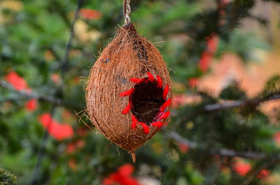 Los árboles de vida silvestre de este año (el más alto de la agrupación alcanza casi 5 metros de alto) muestran ramas y troncos envueltos con hilo de un intenso color carmesí, que ayudan a acentuar la estructura de cada árbol. Además, hay adornos hechos a mano que adornan los árboles y proporcionan alimento para pájaros y ardillas.