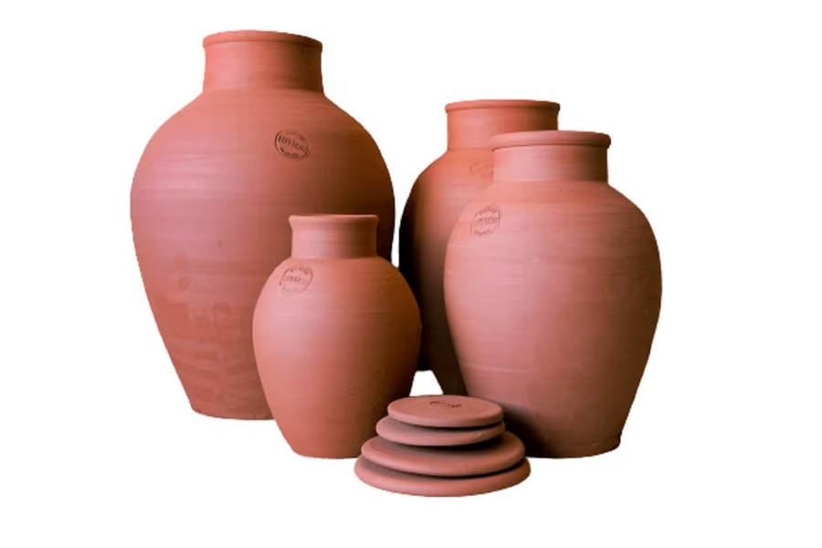 Al estar hechas con barro sin esmaltar, las paredes microporosas de estas ollas, que se entierran profundamente en el suelo junto a las plantas, guían la filtración del agua en la dirección donde se desarrolla la succión que atrae las moléculas del agua a las raíces de las plantas.