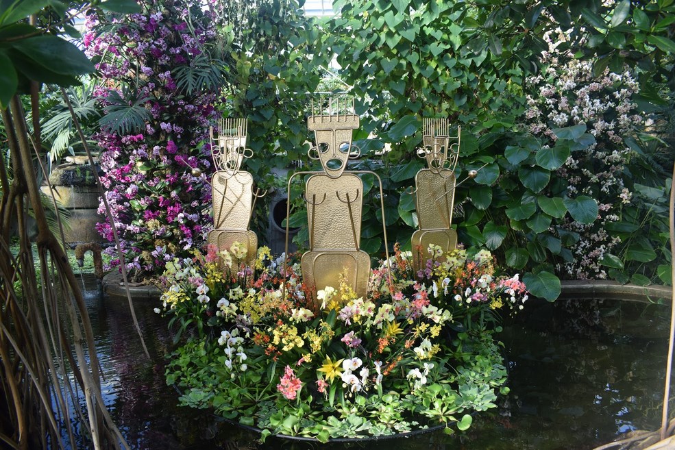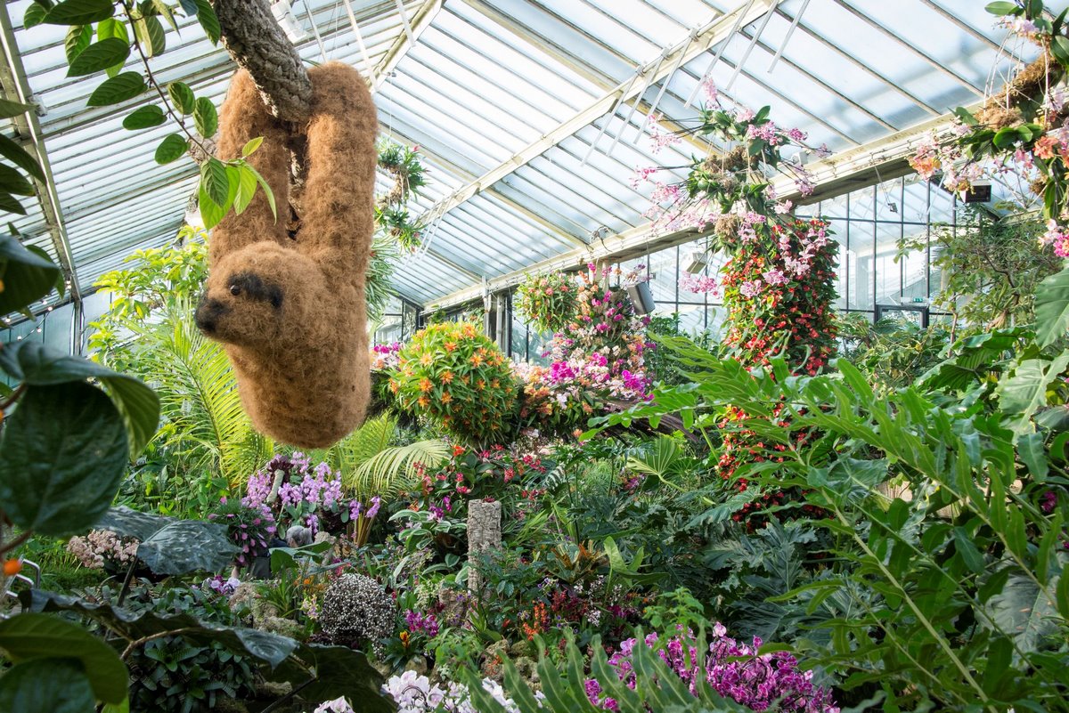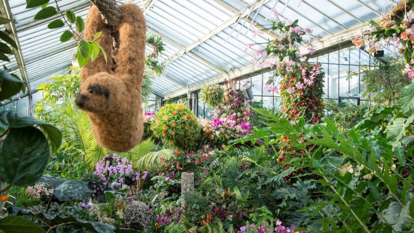 Suspendidas del techo de cristal del Princess of Wales Conservatory se pueden ver cientos de coloridas mariposas. Además, una pantalla flotante de color amarillo dorado que honra a la leyenda de El Dorado.