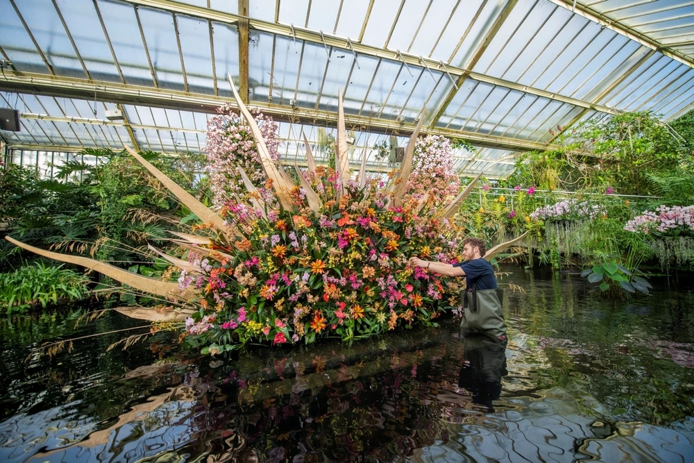 Alberto Trinco, supervisor interino del Conservatorio, comenta que la colorida multitud de plantas comenzó a llegar en enero y llevó semanas a docenas de voluntarios y personal de Kew ensamblar a mano las composiciones de esa exhibición.