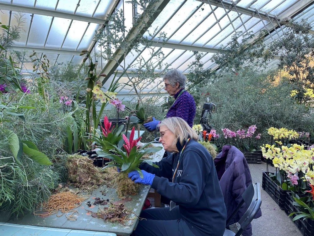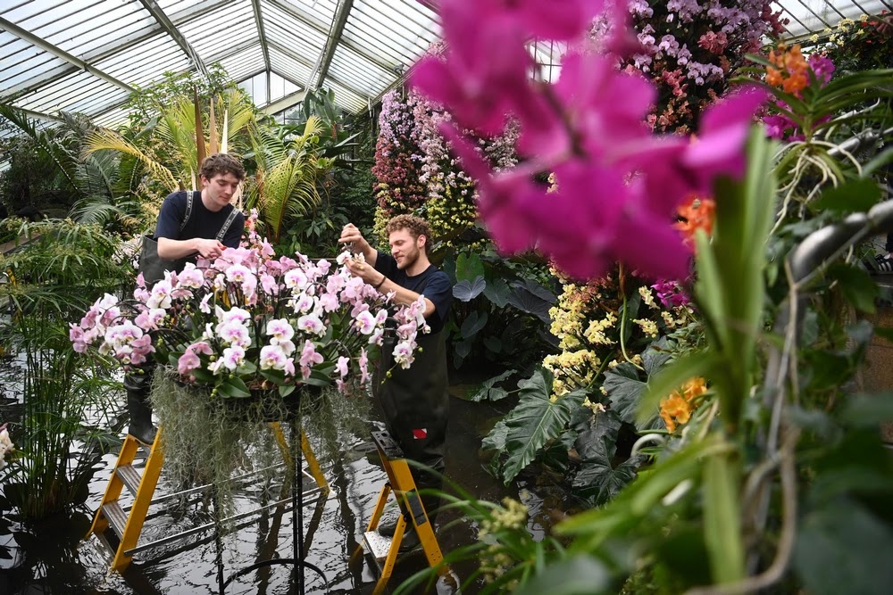 | Voluntarias trabajando en el montaje de la exhibición de orquídeas de Kew | © Kew Gardens |