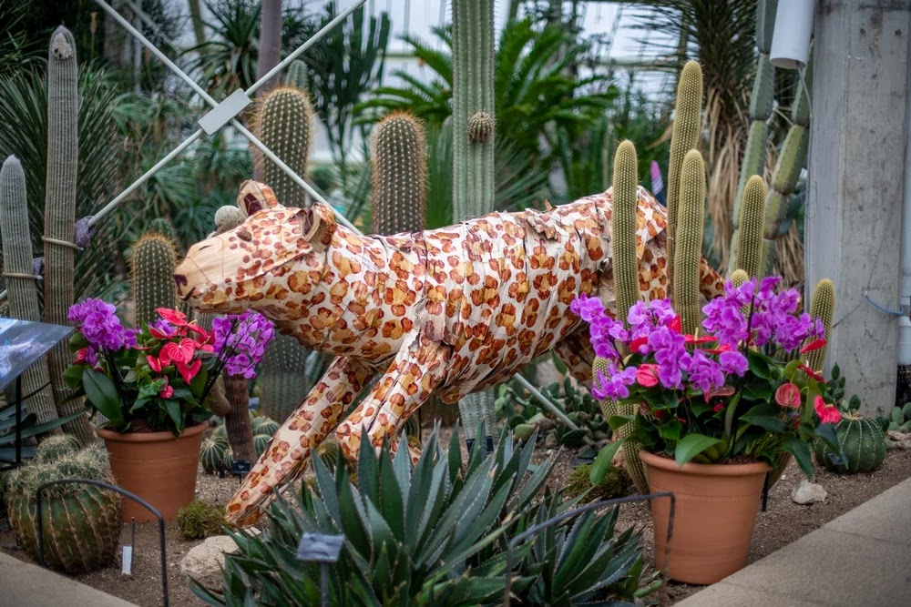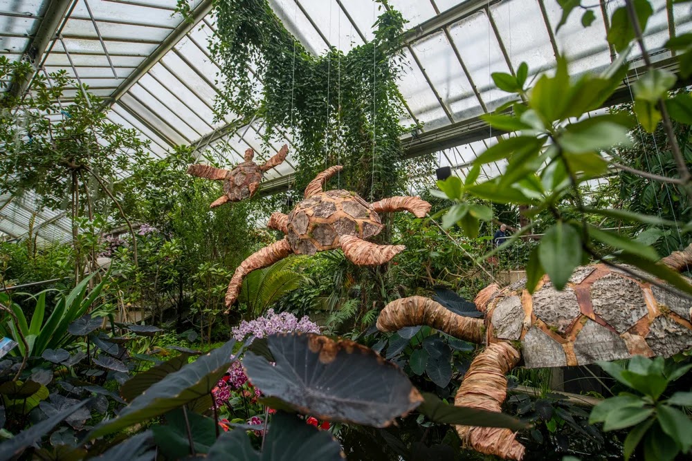 Junto a la exhibición central en el estanque del Princess of Wales Conservatory, un punto culminante del festival que se llena de orquídeas y bromelias en tonalidades de amarillo y naranja, el visitante puede transportarse a los trópicos en una ruta que atraviesa el espectacular invernadero de cristal. En esa particular expedición también se promueve la fauna de Costa Rica, con esculturas hechas de materiales naturales y anidadas entre las plantas, que representan algunos de los animales más representativos del país, que incluyen monos, tortugas marinas y el resplandeciente quetzal (Pharomachrus mocinno), un símbolo de la protección de los bosques costarricenses, cuyo plumaje de color verde iridiscente lo convierten en una de las aves más bellas del mundo.