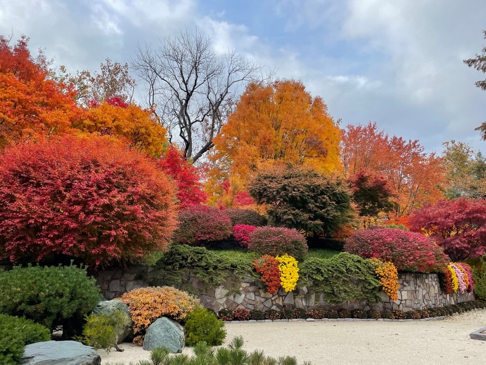 Desde el amarillo dorado brillante hasta el cobre apagado y el escarlata profundo destacan en otoño en el Jardín Botánico de Misuri. El colorido follaje de los más de 5.500 árboles, una de las colecciones más antiguas del jardín, no defrauda. Pero, además del cambiante dosel, otras plantas, como los crisantemos que caen en cascada a lo largo de un muro de piedra, colorean la estación.