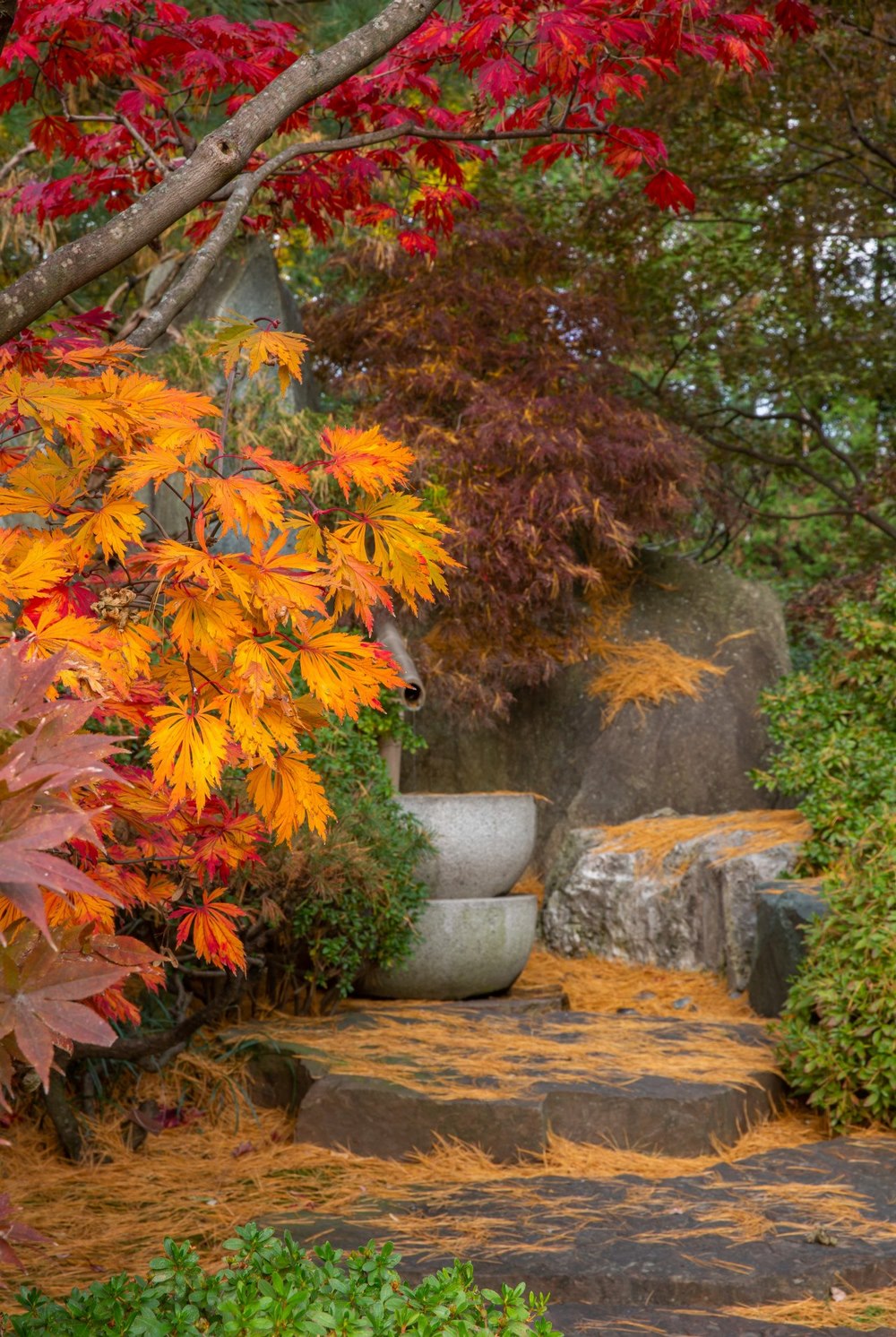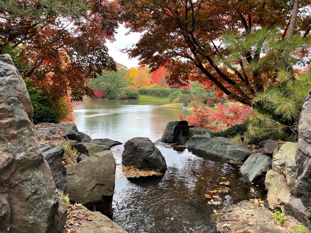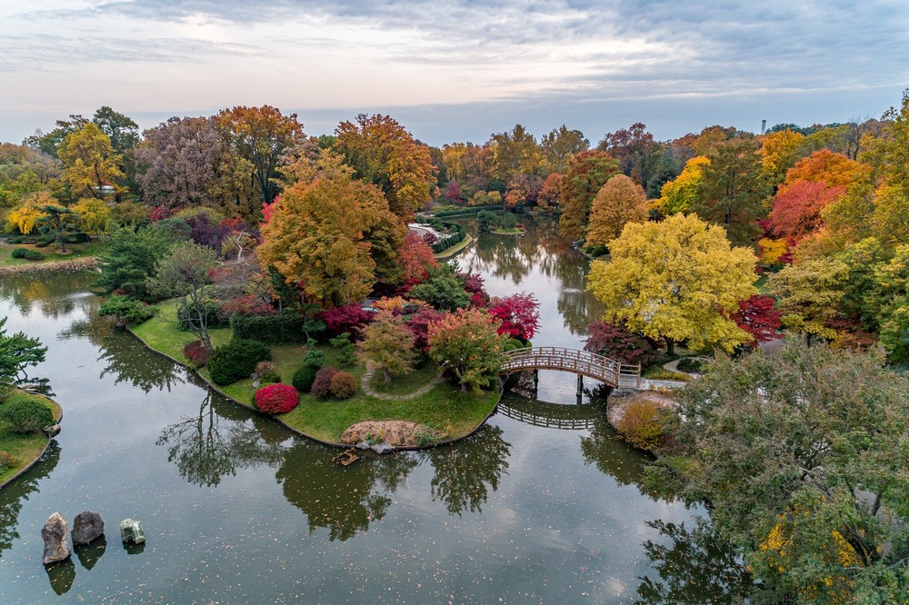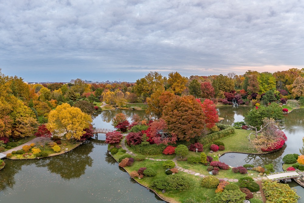 Si hay un lugar en el Jardín Botánico de Misuri donde el otoño explota en mil tonos es el jardín japonés de 5,6 hectáreas inaugurado en 1977, un jardín de paseo cuya característica principal se encuentra en un lago de 1,6 hectáreas y cuatro islas: Tortoise Island y Crane Island, ambas símbolos de longevidad en la tradición japonesa, son inaccesibles para el público (no les llega ningún puente); Paradise Island, formada por tres grandes rocas es el centro simbólico del jardín; y Teahouse Island, la isla más interna, conectada al continente por dos pasarelas.