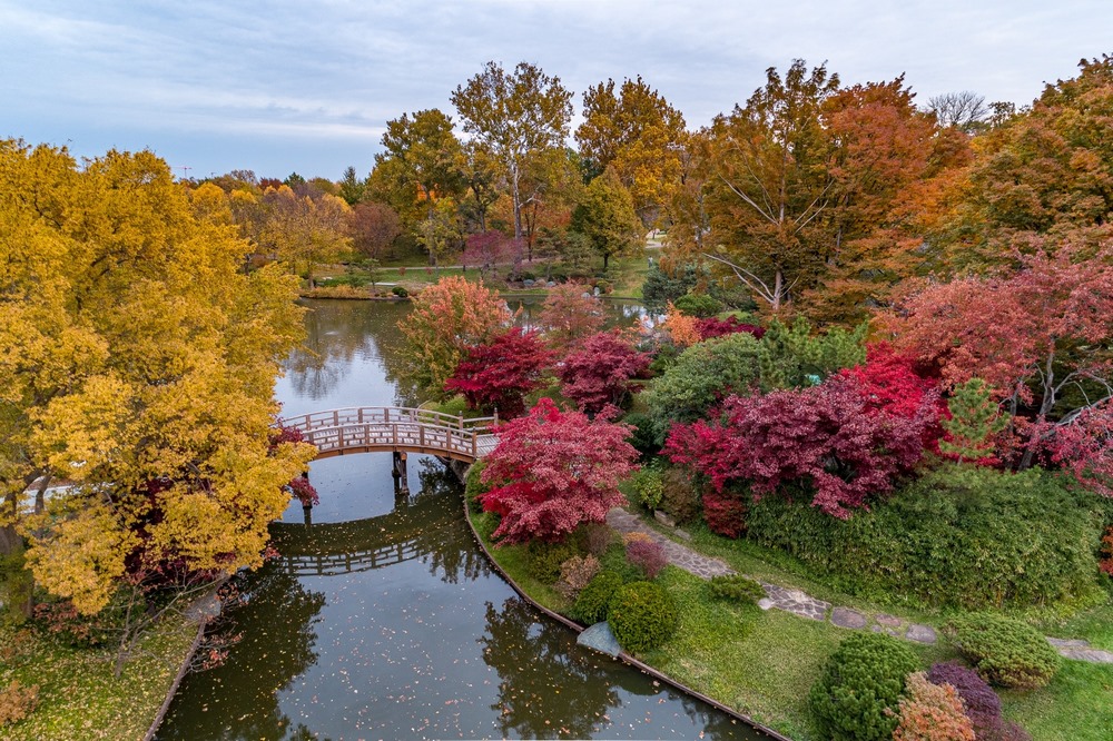 Claro que, en este paseo de otoño es posible que también encontremos diferentes variedades de arces, tilos, manzanos ornamentales, zumaques fragantes, tuliperos, liquidámbares, guillomos, magnolios, tupelos, boneteros alados y falsos alerces. Eso y algún que otro puente si paseamos por el jardín japonés.